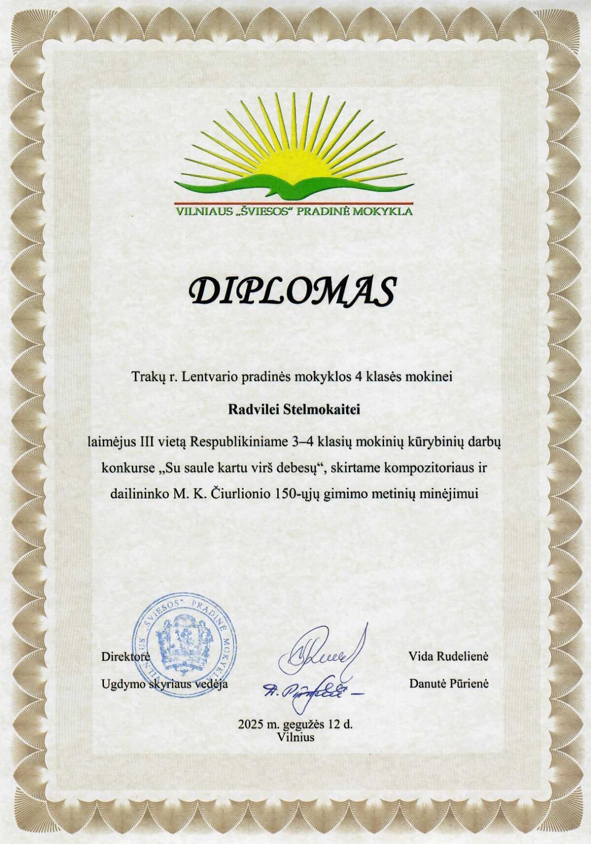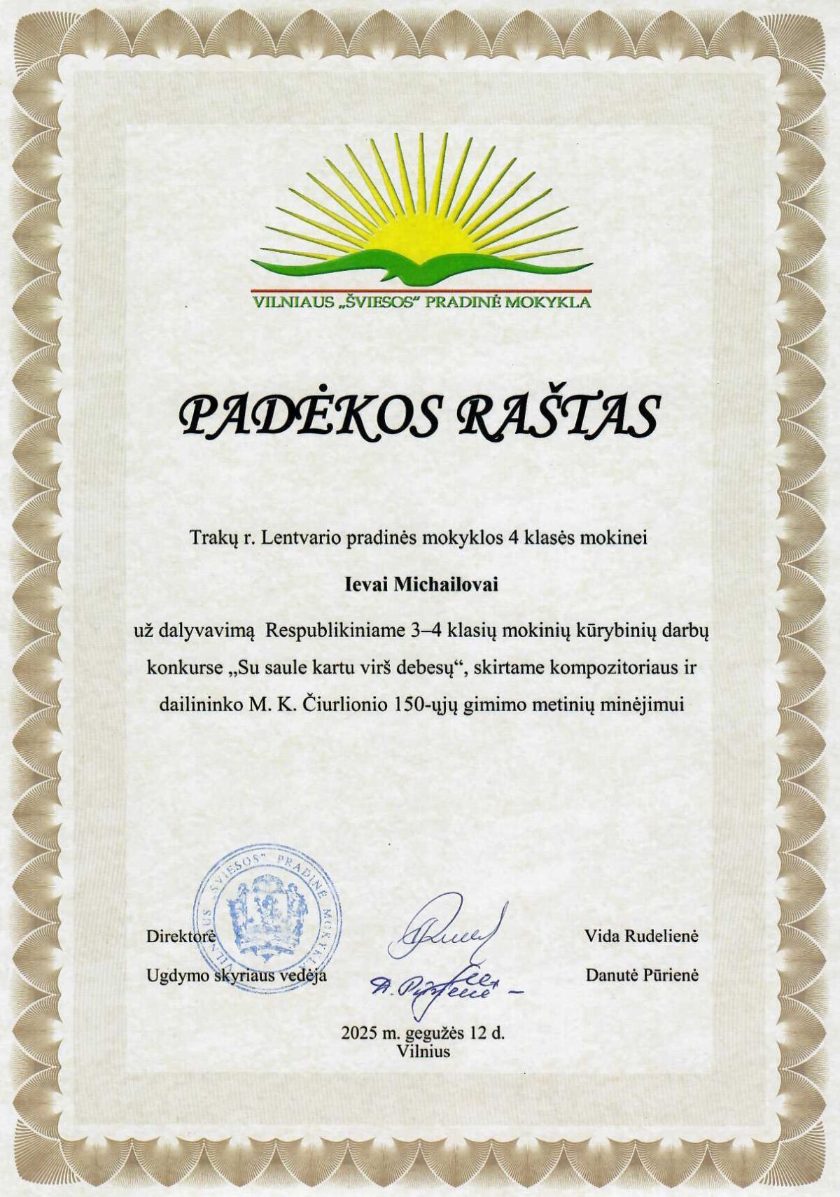 Mūsų mokyklos 1d klasės mokinė Ema Raguckaitė, atstovaujanti Lentvarį ir „Vibeou... -